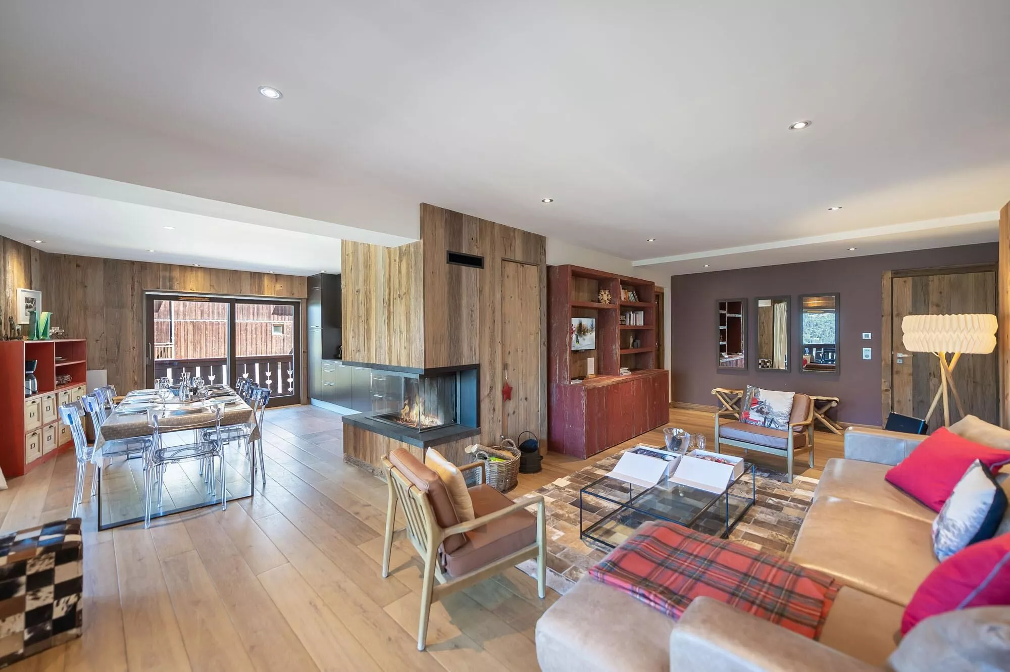 Apartment Aspen Lodge 31 is a spacious and elegant alpine apartment located in the prestigious Aspen Lodge & Park residence in Méribel. Offering approximately 129 sqm of living space, it combines contemporary mountain design with a warm and inviting atmosphere. The open-plan living area features a fireplace, a fully equipped kitchen, and large windows opening onto a terrace with panoramic views over the surrounding peaks. With three bedrooms and access to a shared wellness area, it provides an ideal retreat for families and groups seeking comfort and direct access to the slopes