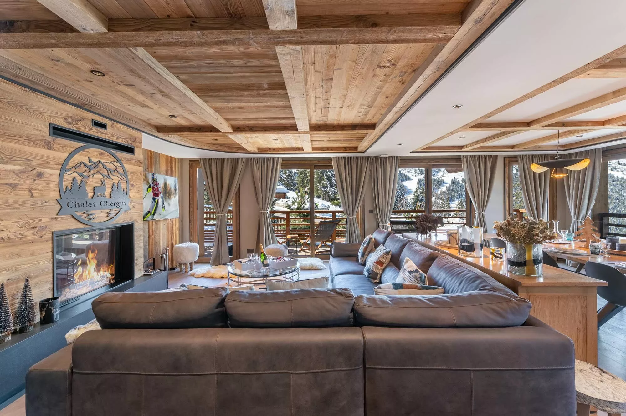 Chalet Chergui is a refined and elegant alpine retreat located in the prestigious Rond-Point area of Méribel, just steps from the slopes. Spread over four levels, the chalet blends traditional Savoyard architecture with contemporary design, offering bright and spacious interiors enhanced by large windows and panoramic mountain views.
